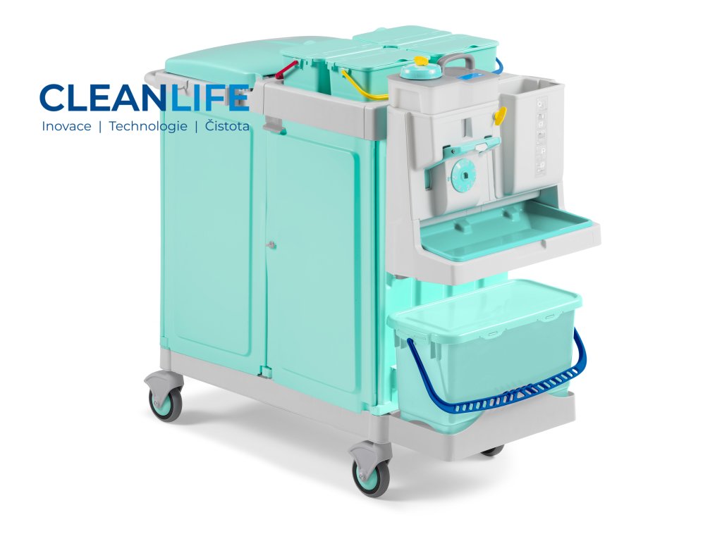 Modulární konstrukce vozíku umožňuje oddělit jednotlivé pracovní zóny – prostor pro mytí podlah, úložný prostor pro čisticí a dezinfekční prostředky a prostor pro sběr odpadu nebo prádla. Toto řešení pomáhá minimalizovat riziko křížové kontaminace a zvyšuje hygienickou bezpečnost při úklidu.