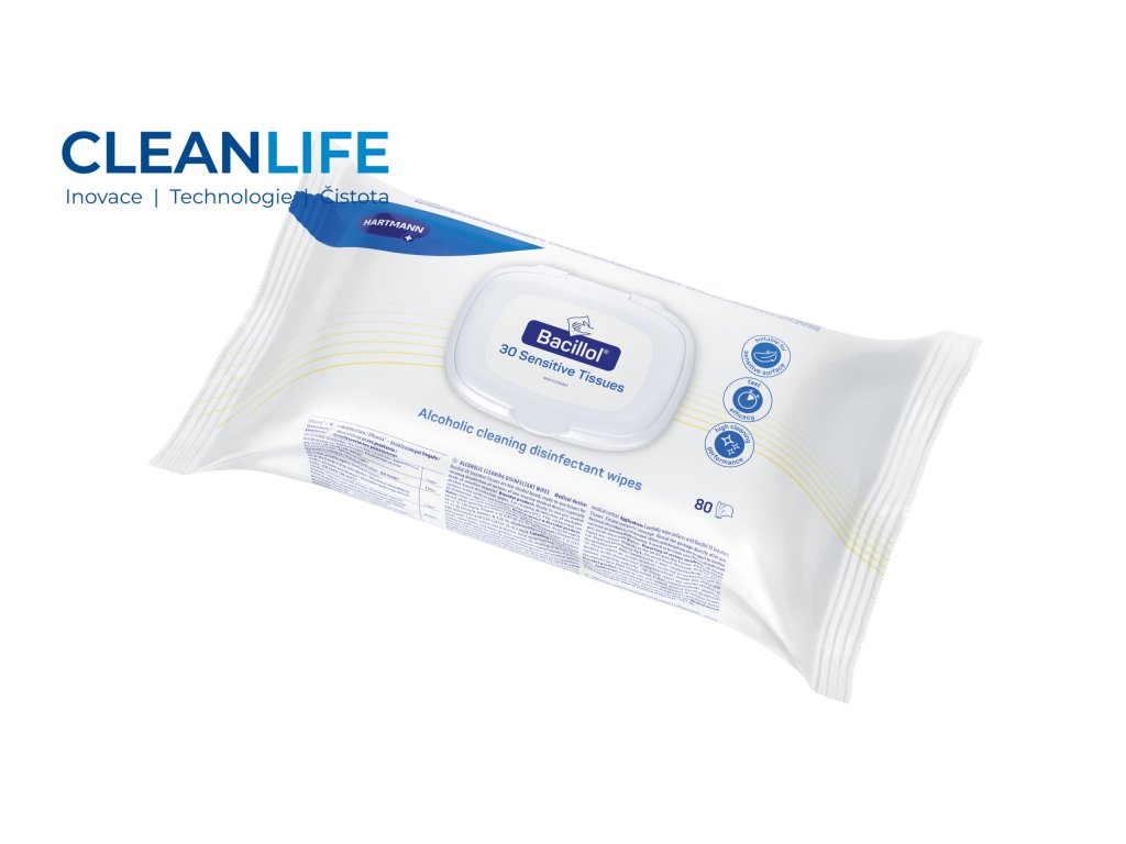 Bacillol® 30 Sensitive Tissues jsou profesionální alkoholové dezinfekční ubrousky připravené k okamžitému použití, určené pro dezinfekci povrchů z velmi citlivých materiálů – jako jsou makrolon, plexisklo, polysulfon či potahy z umělé kůže. Formulace je bez obsahu aldehydů, barviv a parfemace, což přispívá k výjimečné materiálové snášenlivosti a umožňuje bezpečné použití i v prostředích s vysokými nároky na hygienu.