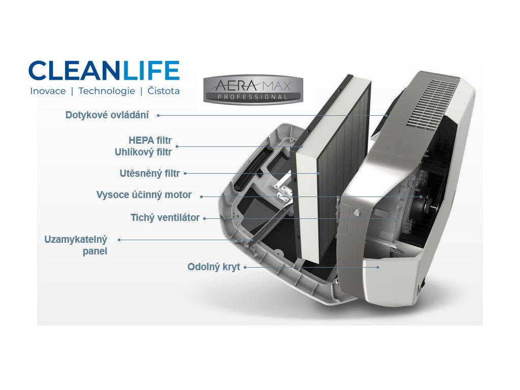 - Čističky vzduchu AeraMax PRO jsou vybaveny technologií EnviroSmart™, která pomocí inteligentních senzorů (hluku, pohybu a plynů) automaticky nastavuje optimální výkon a hospodárnost čističky.