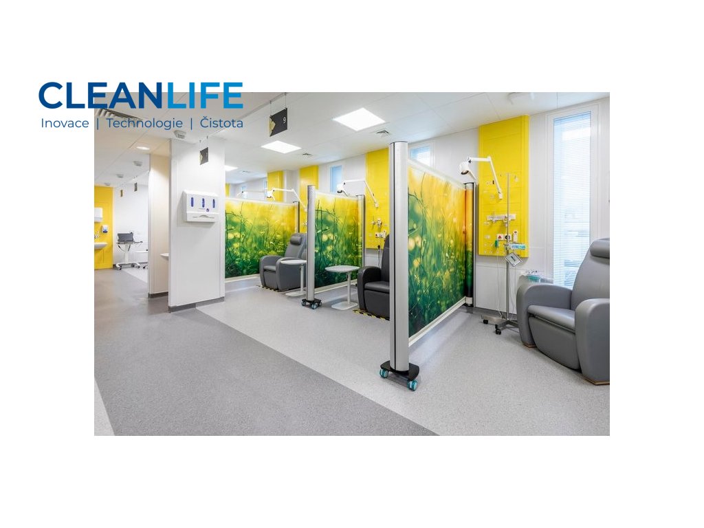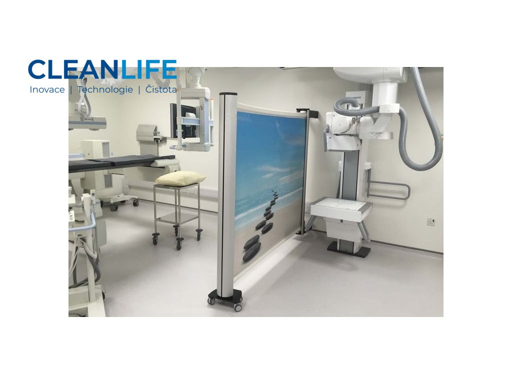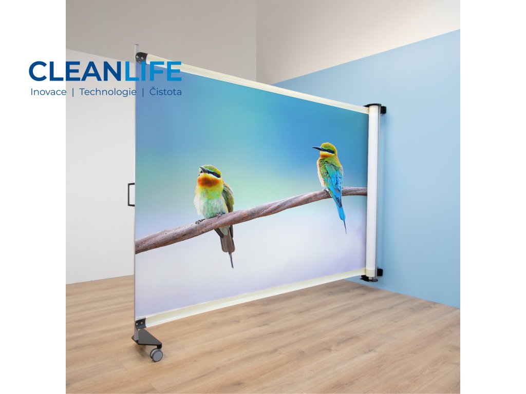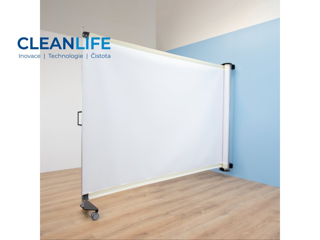 AIR má odlehčený rám s lehkou úchytkou a kompaktním základním boxem, díky čemuž je velmi nenáročná na prostor a snadno se skládá zpět, když není potřeba. Povrch zástěny je z PVC, které lze snadno otírat a dezinfikovat běžnými prostředky, což zvyšuje hygienickou bezpečnost ve zdravotnických a sociálních zařízeních, ordinacích nebo čekárnách.