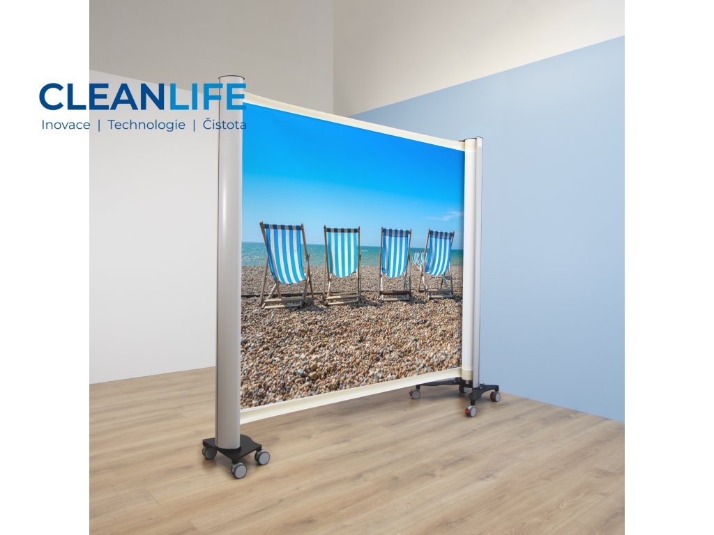 Mobilní flexibilní zástěna PRO je ideální volbou všude tam, kde tradiční závěsy nestačí — nabízí moderní design, stabilitu i jednoduché ovládání jednou rukou, a zároveň umožňuje volbu dekorativních potisků pro příjemnější a přátelské prostředí.