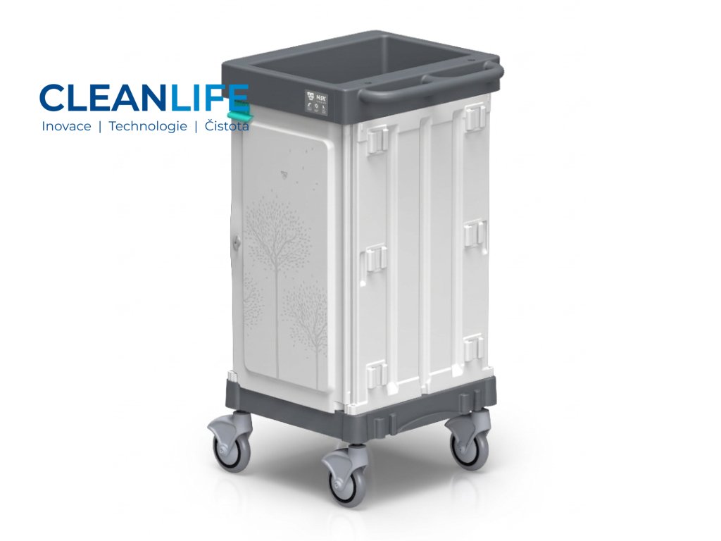 Hluk při manipulaci s vozíkem je minimalizován díky protihlukové úpravě. Vozík disponuje uzamykatelným systémem – bezpečnost a ochrana materiálu je zajištěna.