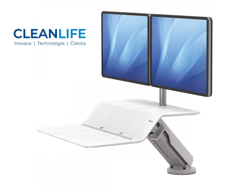 - Profesionální Sit & Stand stanice pro dva monitory.