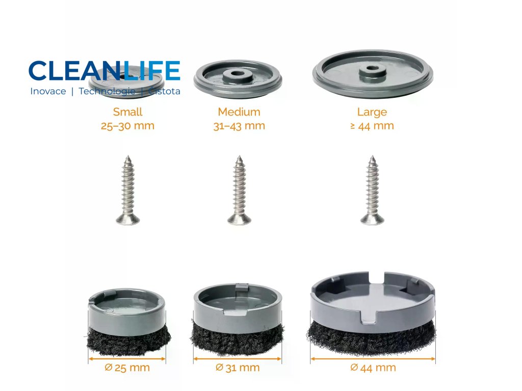 - Univerzální průměry 25, 31 nebo 44 mm – vhodné pro standardní nohy stolů a židlí.