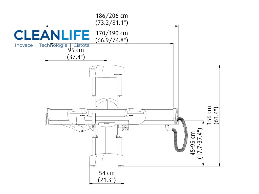 - Vysoká nosnost až 227 kg vhodná i pro bariatrické klienty.