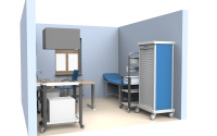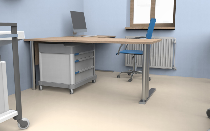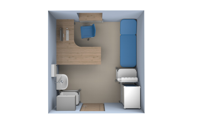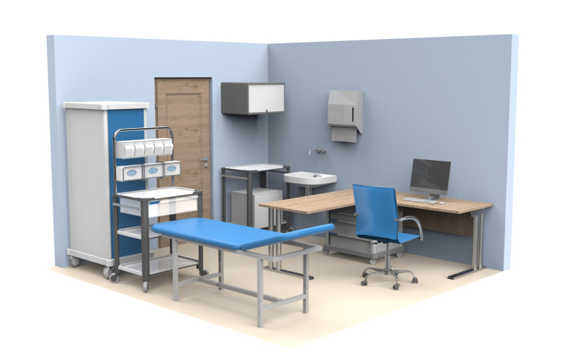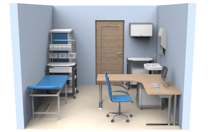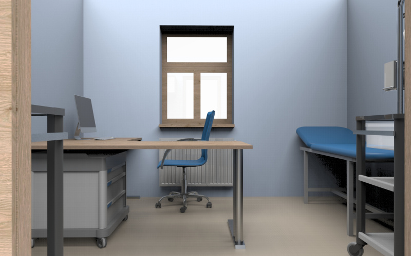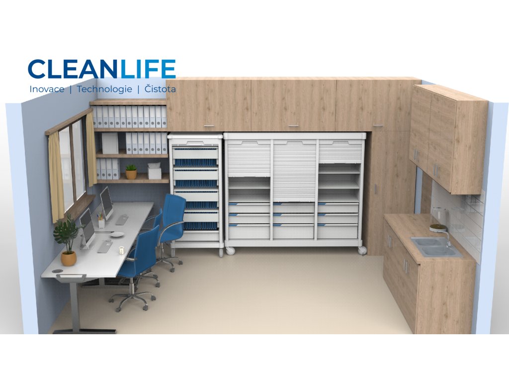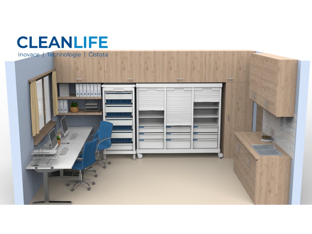 - 🧰 Rozmístění zdravotnických vozíků, kartoték, lékových skříní a dalšího nezbytného nábytku.