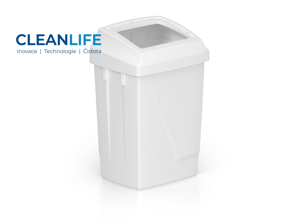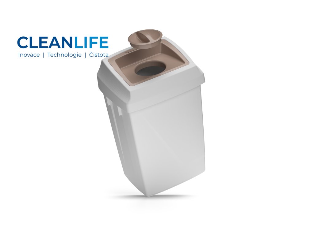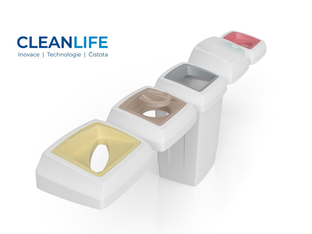 Díky této modularitě je možné díly snadno kombinovat dle potřeby místnosti nebo typu odpadu — změna víka, přidání tvarované vložky nebo výměna objemu se provádí bez nutnosti měnit celý koš.