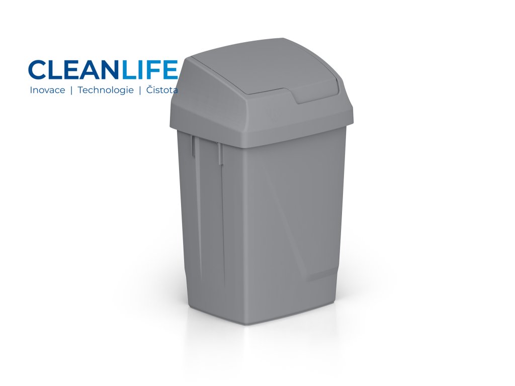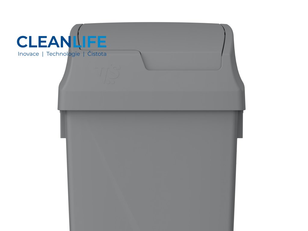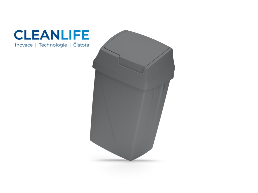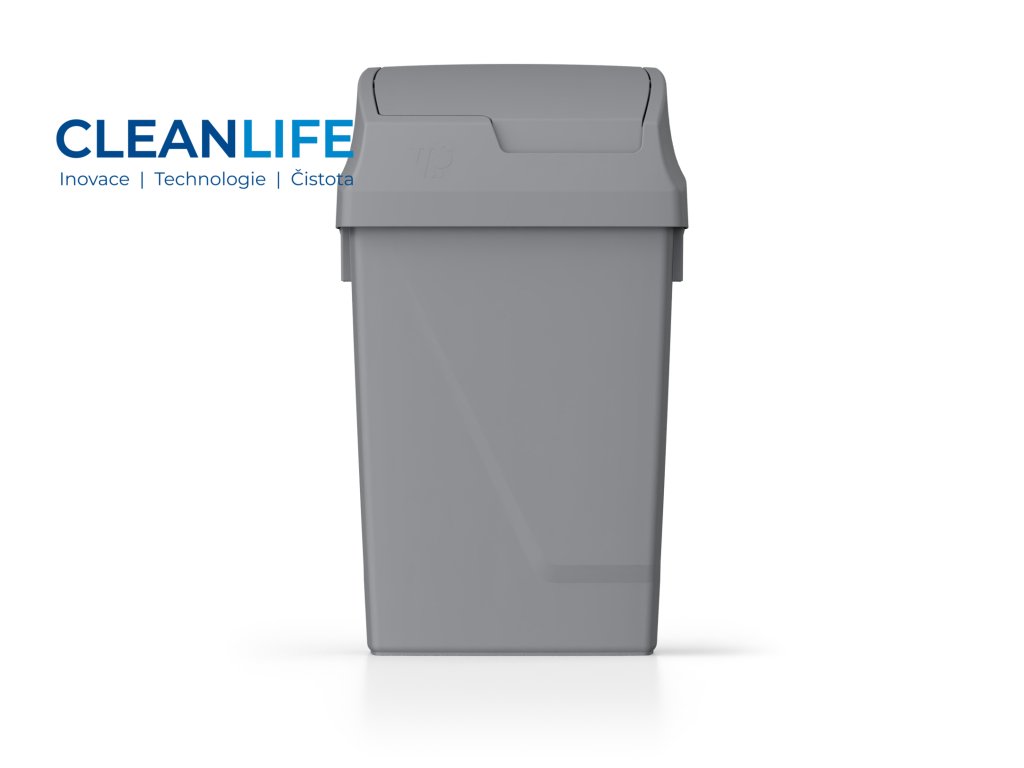 Víko je výkyvné a otevírá se směrem dovnitř koše, což eliminuje nárazy do stěny nebo okolního vybavení. Kromě toho lze pohyb víka v určité pozici zablokovat pro pohodlnější vkládání odpadu.