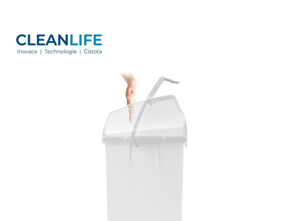 Barevné víko je důležitým prvkem pro vizuální třídění odpadu — víka v různých barvách usnadňují rychlé rozlišení. K dispozici jsou verze o objemu 50 l i 25 l, kdy koš lze buď volně postavit, nebo upevnit na zeď pomocí nástěnného držáku (volitelné příslušenství).