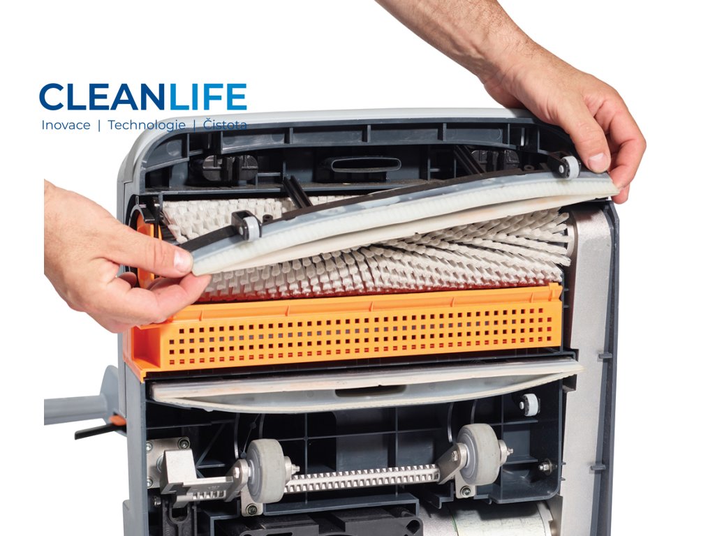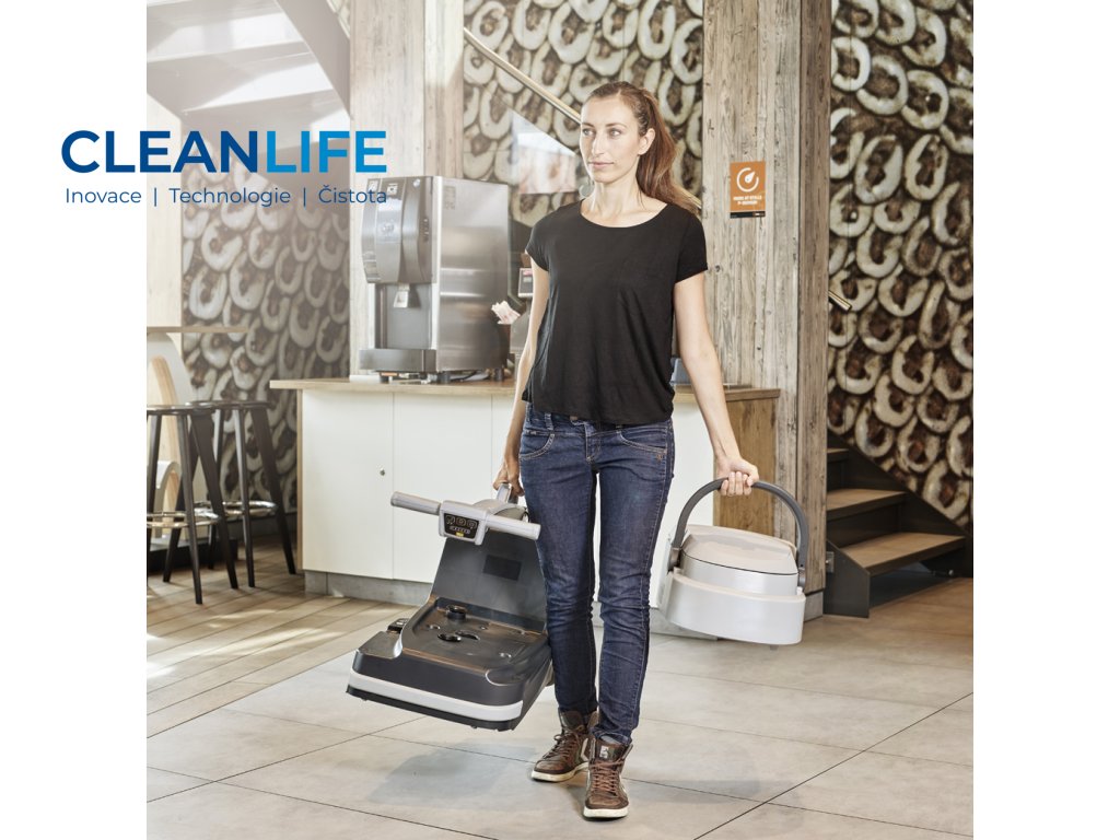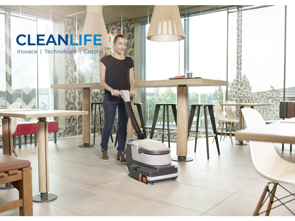 - Efektivita úklidu: jedním pohybem stroj zametá, drhne a odsává – bez nutnosti předchozího zametání.