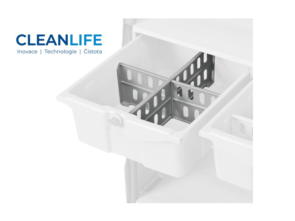 Moderní hygienický vozík Mini Magic 400S je ideální pro rozvoz léků a převaz, vyroben z polypropylenu – nárazuvzdorný, nezreziví, ekologický a snadno se udržuje.