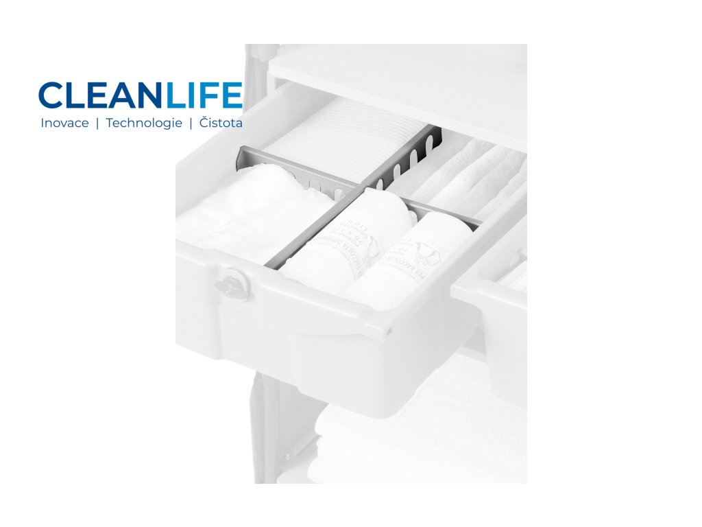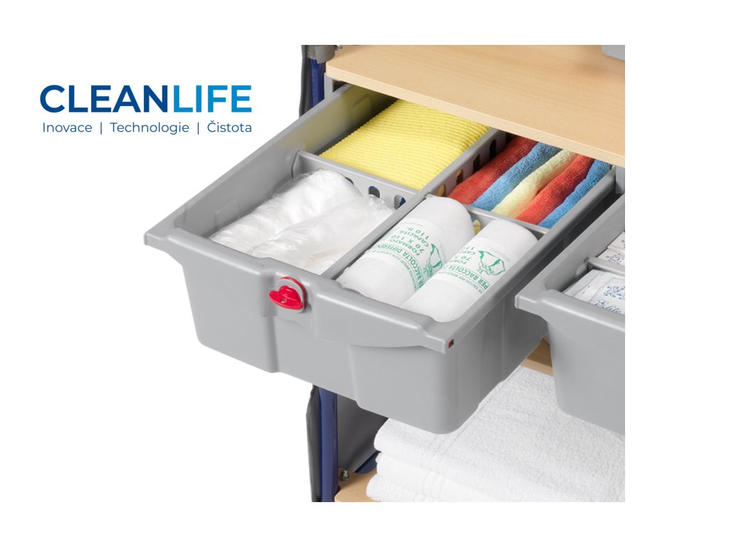 Moderní hygienický vozík MagicArt 05 Safety je navržen pro tichý rozvoz čistého prádla a osobních pomůcek v nemocnicích a sociálních zařízeních.