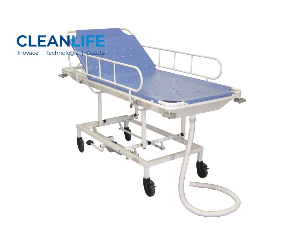 - Hydraulické nastavení výšky (50–95 cm) pro optimální ergonomii v péči.