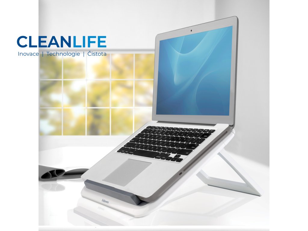 Fellowes I-Spire Quick Lift stojan na notebook je navržen pro zajištění optimální ergonomie při práci s notebookem. Podporuje notebooky až do velikosti 17 palců a nabízí 7 nastavitelných úhlů, což umožňuje přizpůsobit výšku obrazovky pro pohodlné a zdravé držení těla.
