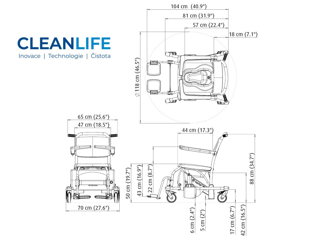 - Multifunkční využití – sprchování, toaleta, převoz pacienta.