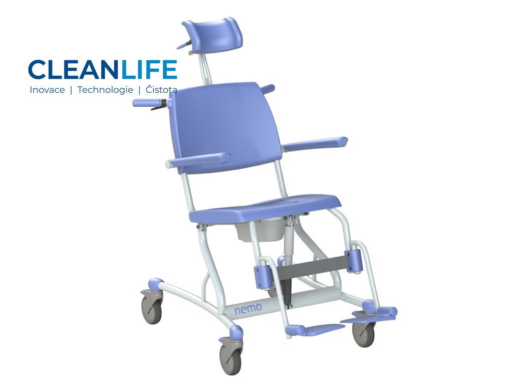 Sprchovací a toaletní židle Nemo je navržena pro maximální bezpečí a komfort jak pro uživatele, tak pro pečující. Díky manuálnímu sklonu až 30° vám umožní nastavit optimální polohu pro hygienu. Pevná a zároveň mobilní konstrukce s antibakteriální úpravou odolává každodennímu použití v náročných podmínkách. Pohodlný sedák s toaletním otvorem, snadné sklápění područek a nožní opěrky z ní dělají praktické řešení pro sprchování i WC hygienu.