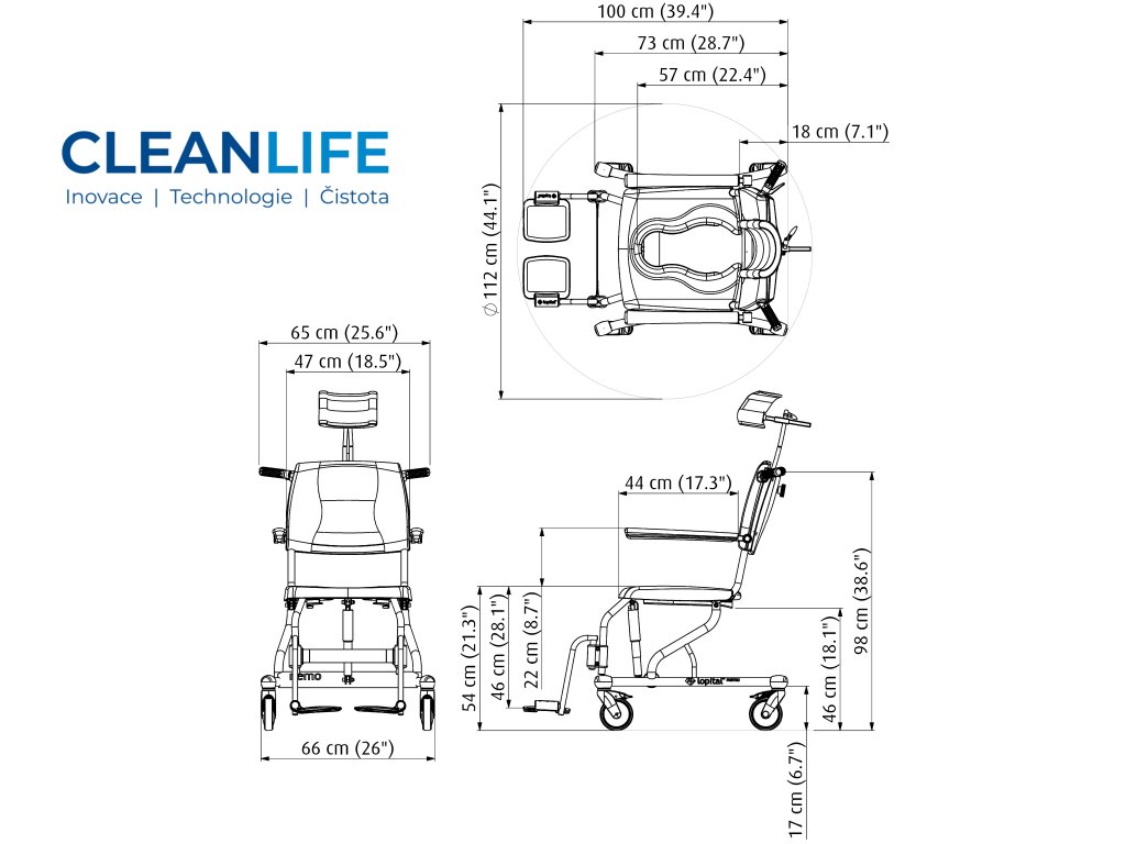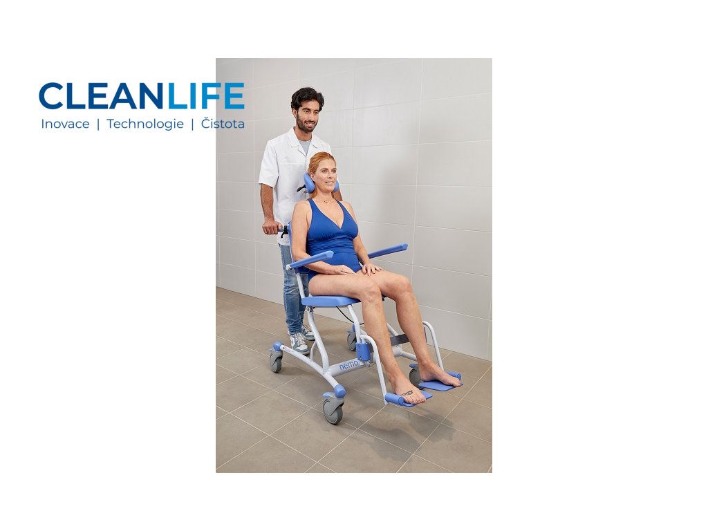 Životnost a údržba sprchovací židle: Židle Nemo je určena pro každodenní profesionální využití s očekávanou technickou životností přibližně 10 let. Po každém použití je třeba důkladné čištění a dezinfekce sedáku, rámu i pohyblivých částí. Doporučujeme minimálně jednou ročně provést servis kvalifikovaným technikem, aby byla zachována bezpečnost a funkčnost zařízení.