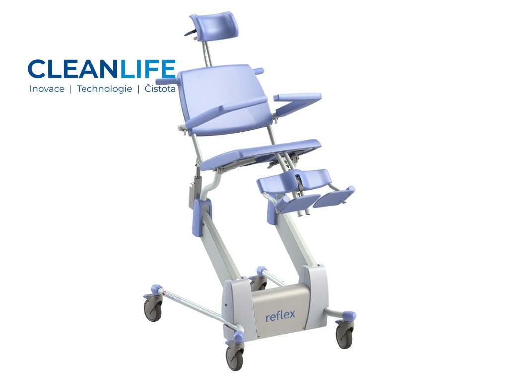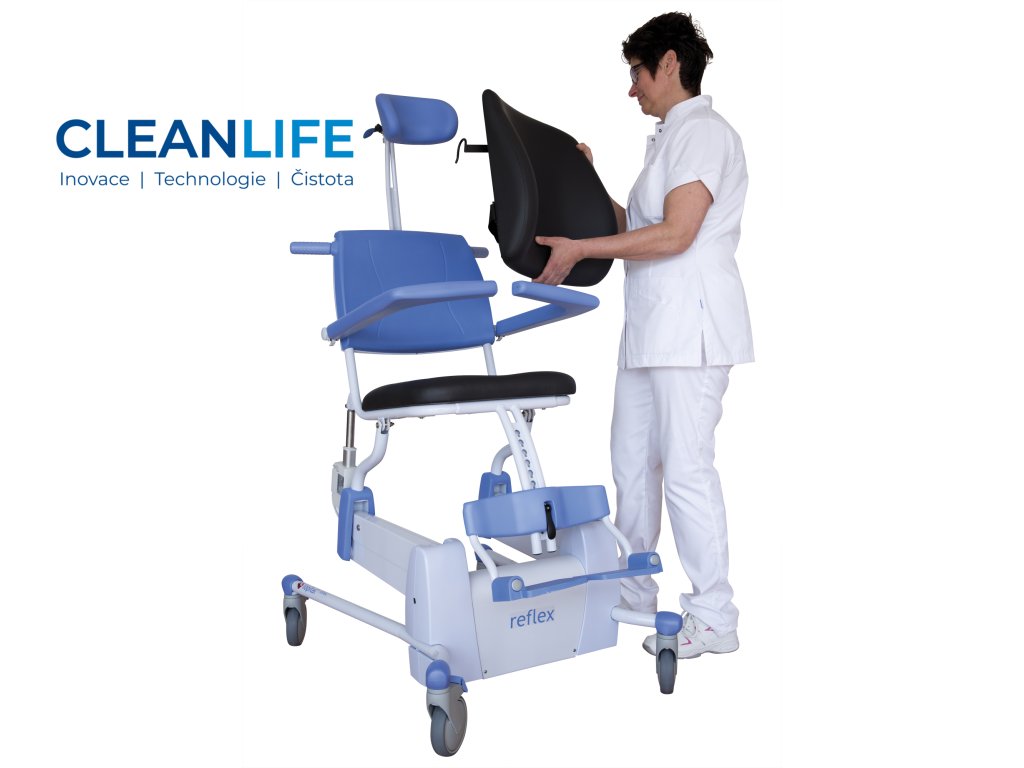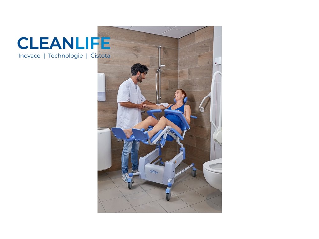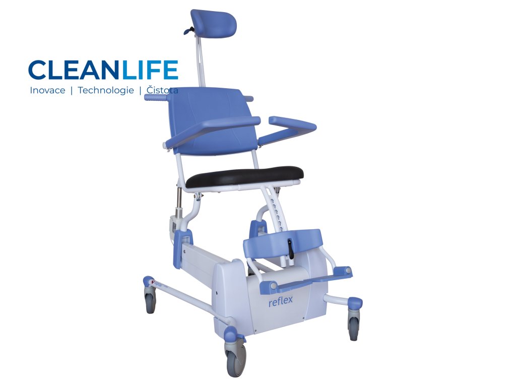 Reflex je ergonomická sprchovací a toaletní židle s inteligentním elektropohonem pro pohodlné nastavení výšky i naklonění, což výrazně usnadňuje práci pečovateli a zvyšuje pohodlí uživatele. Povrch židle je navržen s antibakteriální úpravou a odolnou proti korozi, čímž podporuje hygienu. Intuitivní dotykové ovládání, skládací části a robustní konstrukce dělají z Reflexu spolehlivého parťáka pro každodenní péči.