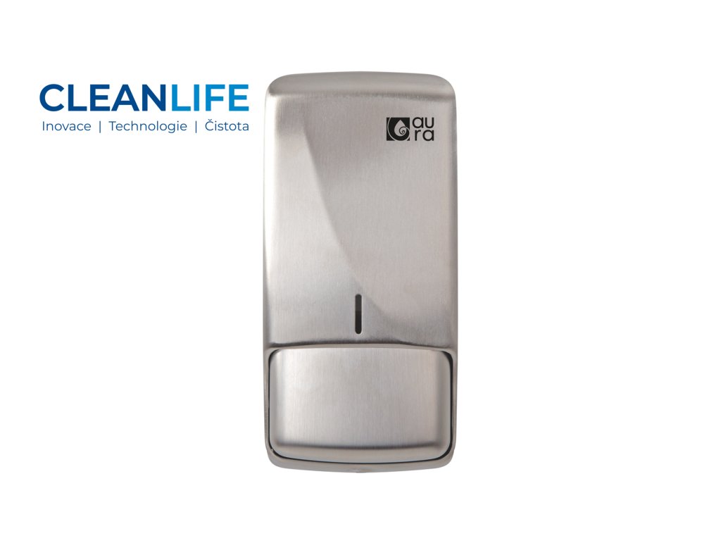 Přední panel obsahuje průzor, který umožňuje snadný vizuální dohled nad stavem tekutého mýdla bez nutnosti otevírání dávkovače. Konstrukce je navržena tak, aby povrchy byly hladké a bez zbytečných prolisů – to usnadňuje čištění a udržení hygieny. Dávkovač je vhodný pro běžná tekutá mýdla a jeho použití je intuitivní a spolehlivé i v prostorách s vyšším provozem.