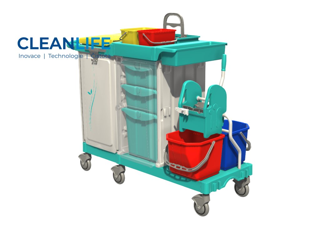 - Profesionální úklidový vozík pro zdravotnictví, sociální služby a hotelnictví.