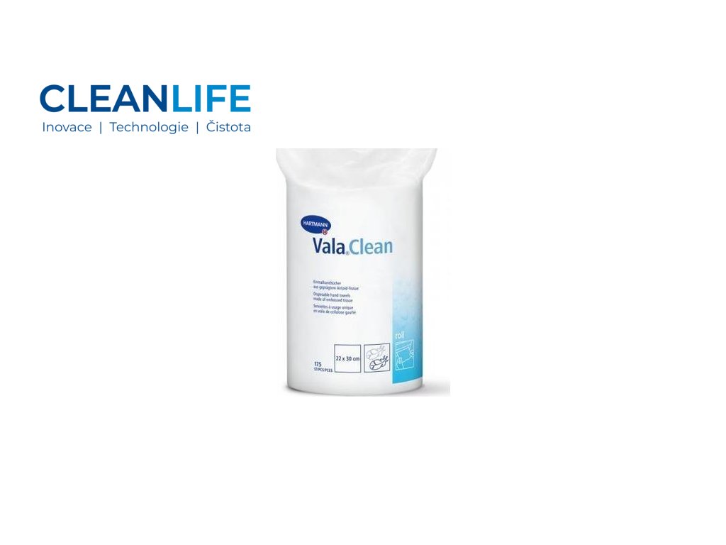 Role ValaClean Roll obsahuje 175 kusů jednorázových ručníků vyrobených z jemné, ale pevné netkané textilie (Air-laid), která zajišťuje výbornou savost a je příjemná na dotek. Tyto ručníky jsou perforovány, takže je lze snadno odtrhávat jednotlivě, což zvyšuje hygienu, protože uživatelé se dotýkají pouze kusu, který použijí. Vlhké ručníky si udrží pevnost i při použití – netrhají se snadno ani za mokra.