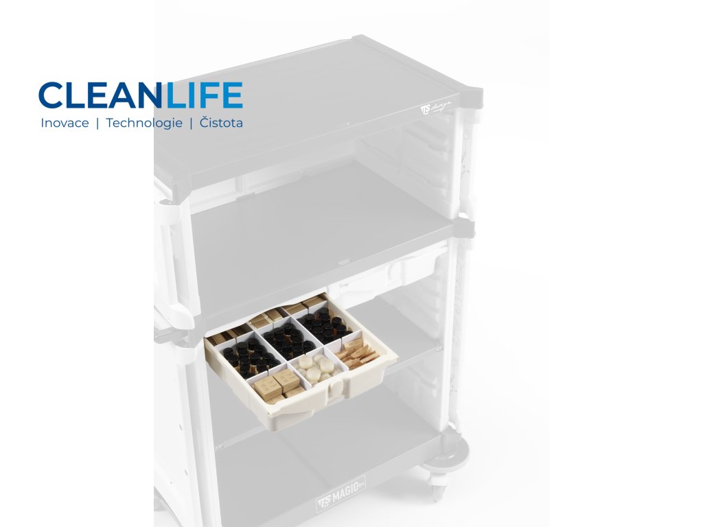 Kompaktní hygienický vozík na čisté prádlo MagicArt 00 Safety s uzamykatelným systémem pro bezpečnou distribuci prádla.