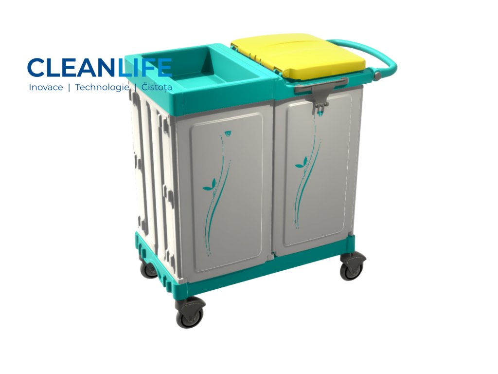 - Profesionální hygienický vozík pro manipulaci s čistým i špinavým prádlem.
