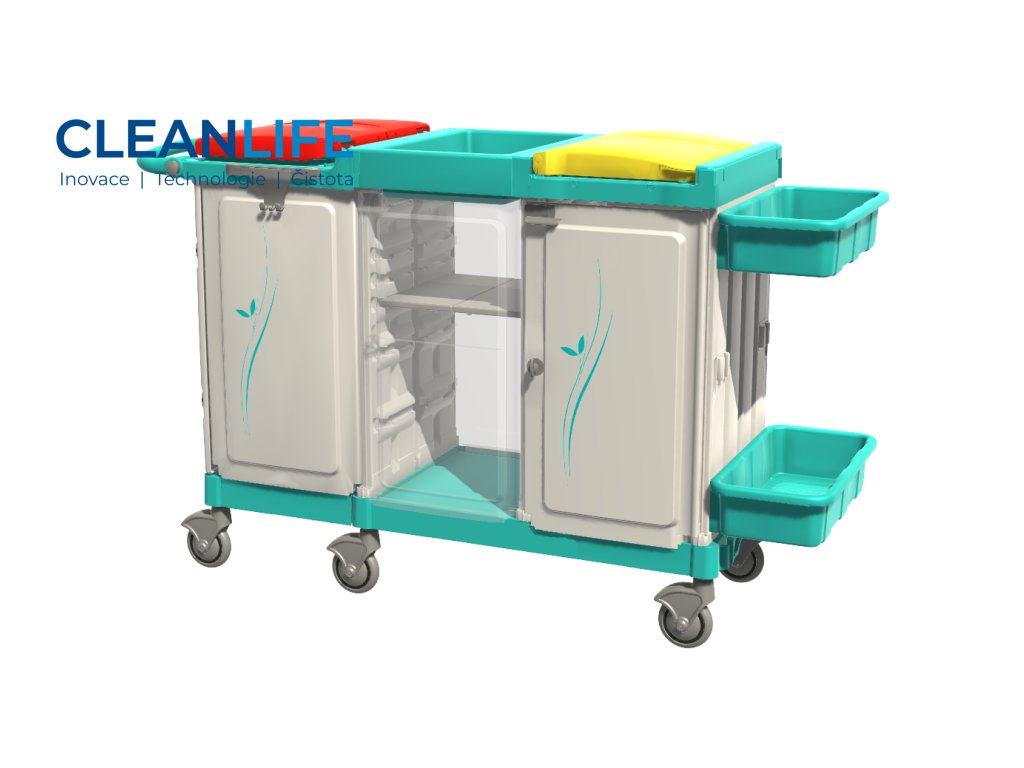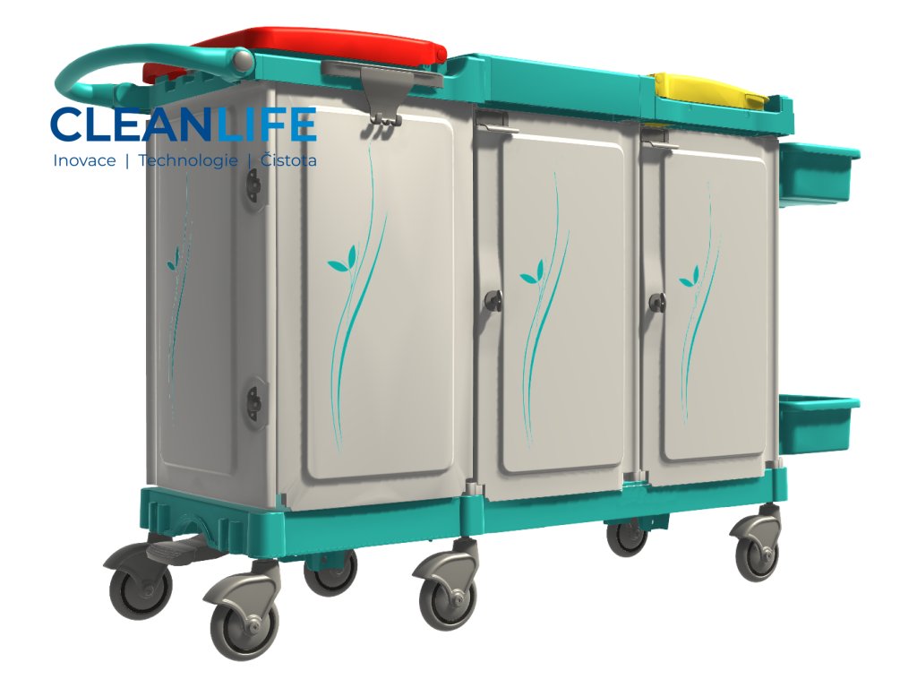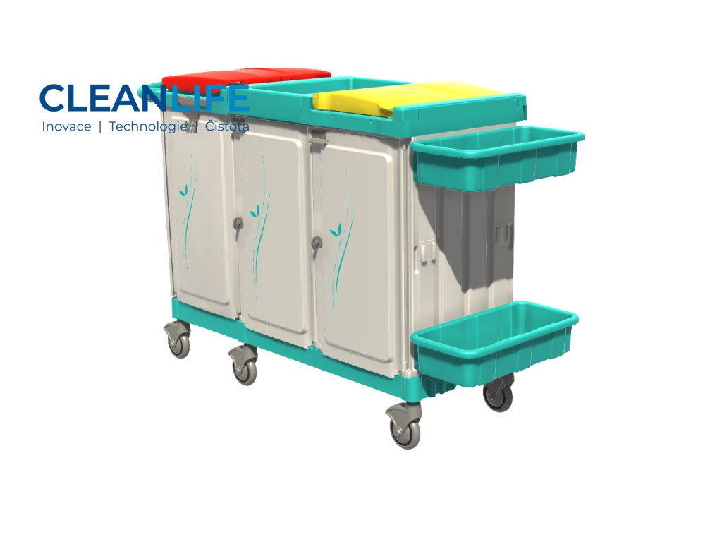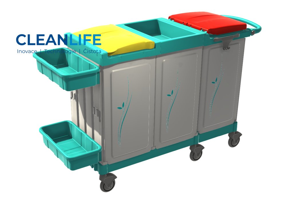 Vozík je rozdělen na dvě hlavní uzavřené komory pro sběr špinavého prádla do vaků o objemu 150 litrů a střední uzavřený modul určený pro převoz čistého prádla pomocí vnitřních polic nebo vaniček. Vnější vaničky pak poskytují praktický prostor pro převoz drobného prádla, hygienických pomůcek, ložního prádla nebo doplňkového materiálu.