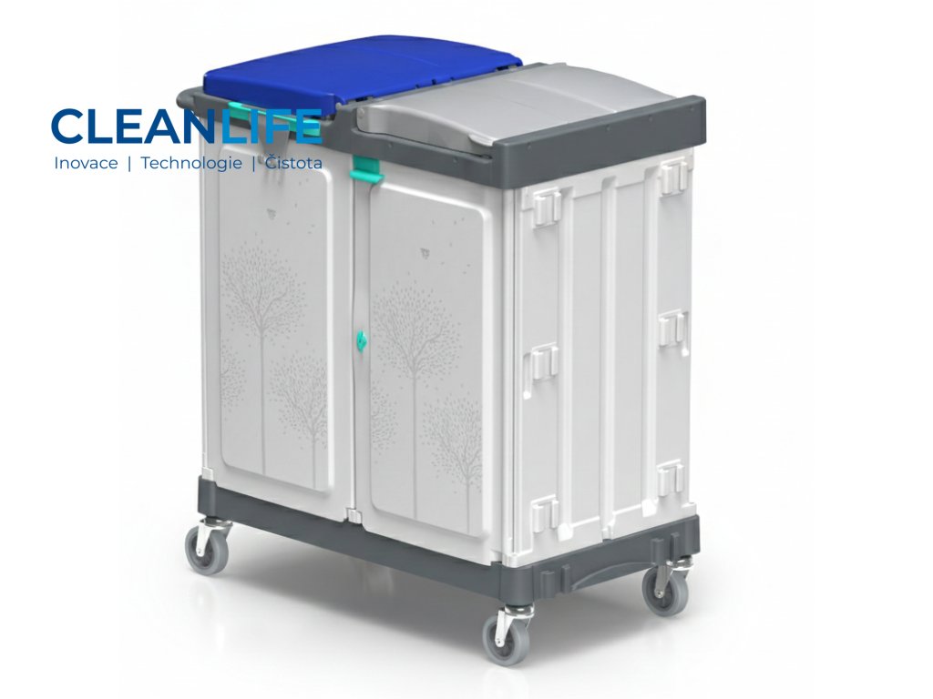 Hygienický vozík Magic Line 190 G s oddělenými prostory pro čisté i špinavé prádlo, uzamykatelným systémem a tichým pojezdem.